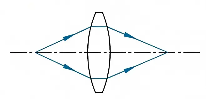 복면 볼록 렌즈/거울은 수평축과 수직축에 대해 대칭입니다. 렌즈의 두 면은 각각 원래 구의 일부였다고 생각할 수 있습니다. 복면 볼록 렌즈/거울의 가운데 부분이 더 두껍다는 사실은 주축에 평행하게 진행하는 광선을 수렴시킨다는 것을 나타냅니다. 따라서 복면 볼록 렌즈/거울은 수렴 렌즈입니다. 복면 오목 렌즈/거울 또한 수평축과 수직축에 대해 대칭입니다.