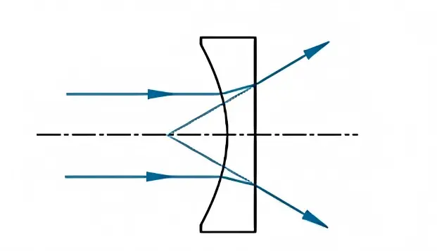 평면 오목 렌즈는 평행한 입사광선을 굴절시켜 렌즈 출력단에서 서로 발산하게 하므로 초점 거리가 음수입니다. 평면 오목 렌즈의 구면수차는 음수이며, 다른 렌즈에서 발생하는 수차를 상쇄하는 데 사용할 수 있습니다. 평면 오목 렌즈와 마찬가지로, 곡면은 일반적으로 구면수차를 최소화하기 위해 가장 먼 물체 거리 또는 무한대 켤레를 향하도록 배치됩니다.