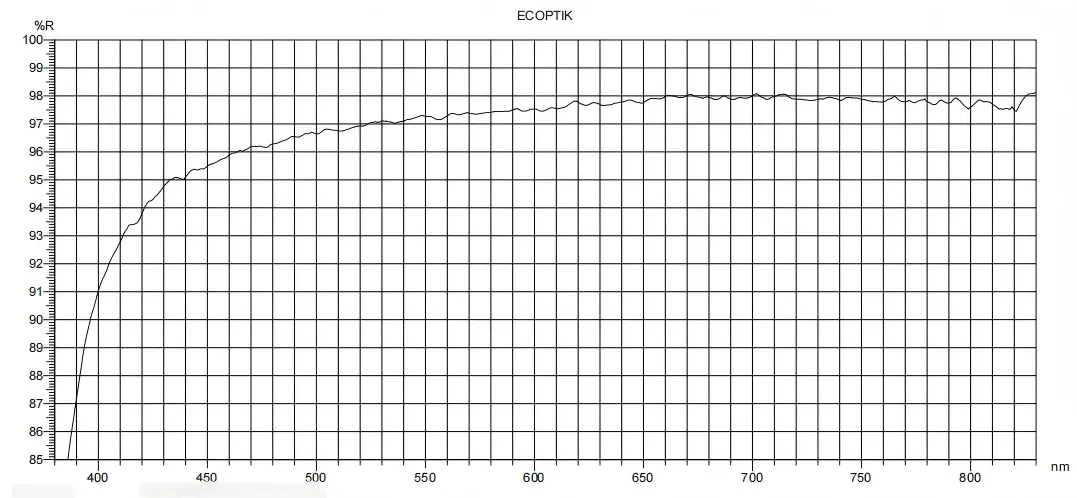 1. Highest reflectivity in the visible light range. 2. Extremely high reflectivity in the near-infrared band, superior to aluminum. 3. For the same reflectivity, silver mirrors can be made simpler (fewer layers) than dielectric film mirrors.