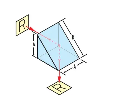 직각 프리즘 거울은 매우 다재다능한 광학 부품으로, 개별 프리즘이나 광학 어셈블리의 구성 요소로 널리 사용됩니다. 직각 프리즘 거울의 한쪽 다리에 입사하는 광선은 공칭 90°만큼 편향되며, 프리즘을 정밀하게 회전시켜 광선의 방향을 조절할 수 있습니다. 직각 프리즘 거울의 핵심 기능은 정밀한 광선 조향(90° 또는 180°)과 상 방향 조정을 가능하게 하는 것입니다.
